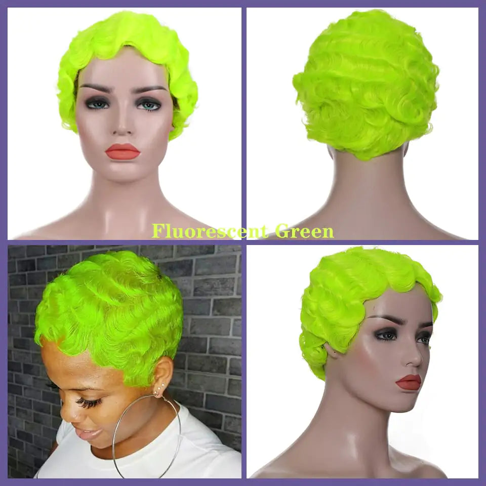 With a length ideal for a chic short hairstyle, this wig is designed to suit any face shape and skin tone. Available in a stunning variety of colors, including black, khaki, light brown, red, pink, wine red, orange, dark green, fluorescent green, purple, gold, and white, you can easily find the perfect shade to express your personality!